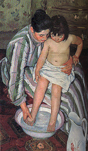 The three pictures are 1) "Death's Head Moth" by Van Gogh (oil); 2) "Prima Ballerina" by Degas (pastel) ; and 3) "The Bath" by Mary Cassatt (oil). The map shown is southeast asia, meaning Cambodia, Vietnam, Thailand and Indonesia, to name the larger countries. It was interesting because have been supporting a little boy in Indonesia throug Compassion International. He turned 13 in January of 2005. His name is Insrianto Sukandar. He wants to be a doctor.